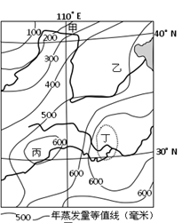 C.单位距离年蒸发量变化甲地区大于乙地区