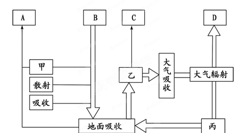 (4)对流层大气温度随高度增加而递减,其原因是_______________。(3分)这一原因与图中甲、乙、丙中的________过程有关。(1分)