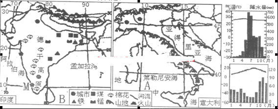 (4)请据图比较两国矿产资源的优劣。印度矿产资源的分布特点是?。(4分)