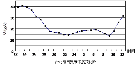 3、单选题 臭氧是汽车废气和工业废气中的氮氧化物经光化学反应而形成,在高温季节,它会悄悄地代替了PM2.5,坐上大气污染物的“头把交椅”。读图回答下题。