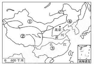 3、单选题 德国慕尼黑大学的一位教授是这样看待中国的:他首先把中国分成东部与西部,再分别分成南北两部分,形成如下图①、②、③、④四块区域,并将这四块区域命名为“银色中国”“金色中国”“黄色中国”和“绿色中国”。据此回答28~30题。