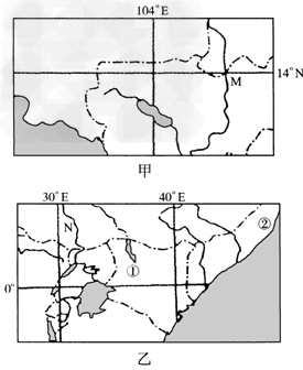 (3)乙图河流沿岸最重要的经济作物为________,发展该经济作物的优越自然条件有:______________