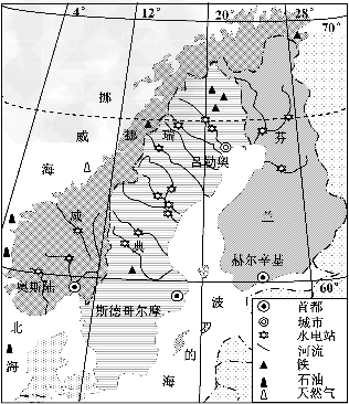 4、综合题 挪威、瑞典和芬兰三国森林覆盖率高,资源环境独特,经济发展水平高。根据下列材料,结合所学知识,回答问题。