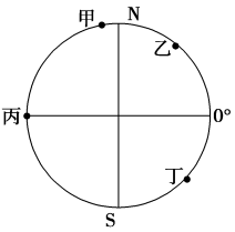 2、单选题  2012年12月,有甲、乙、丙、丁四架飞机以相同的线速度沿所在纬线自西向东飞行(如下图)。据此回答下列问题。
