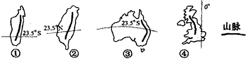 2、单选题 读世界某些岛屿或大陆轮廓示意图(下图),回答1—3题。