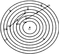 某训练者为辩别方向绘制了一幅图,图中圆圈为同心圆,O点为圆心。他将一根细木棍直插在圆心上,随着太阳位置的变化,细木棍的影子也随之变化,他便将同心圆上的影子端点在图中标出,图中①②③④⑤⑥⑦⑧⑨⑩点为细木棍影子的部分端点,a点为圆弧①⑨的中点,b点为③⑤点连线的中点,c点为⑦⑩连线的中点,d点为圆孤③④的中点。读图判断出位于O点正北方的是: