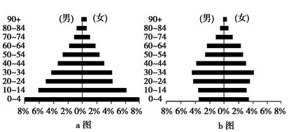 D.b图表示2010年的人口结构,0~14岁男性多于女性