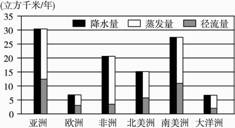 (3)图中各大洲,年径流量最多的是________洲,最少的是________洲。?
