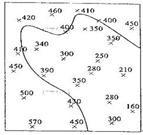 (2)在制作地图时,我们可以根据相邻实测点的高程确定它们之间待定高程点的位置来绘制等高线。请用此方法绘出C地的400m等高线。(请在下图中绘制)(2分)