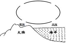【小题1】此时海洋上形成高压、陆地形成低压,说明海洋上气流下沉、陆地气流上升,海洋受热少、陆地受热多,同纬度陆地温度高于海洋,为该半球夏季,此时风从海洋吹向陆地。