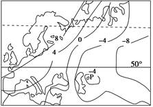 3、单选题 读某区域等温线分布图,回答下列各题。