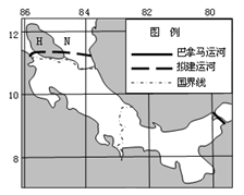 1、单选题 下图为某区域示意图。2013年6月N国批准修建一条跨越该国中部的运河计划,挑战世界知名的巴拿马运河。完成下列各题。