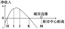 1、单选题 读“某类工业净收入随距市中心距离的变化图”,回答问题。