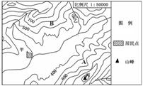 (3)该地夏季的盛行风向是 ,分析A、B两地夏季降水量的差异及成因。(3分)