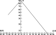 5、综合题 读某日正午太阳高度纬度分布图,回答下列问题。