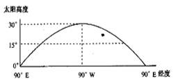 1、单选题 下图表示某时刻北半球某纬线上不同经度太阳高度分布规律。读图,回答下列各题。