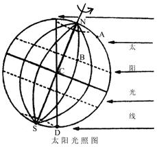 2、综合题 读“太阳光照图”完成下列要求:(15分)