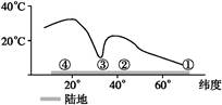 4、单选题 下图为“沿某大陆80°经线7月气温分布曲线图”。读图完成小题。
