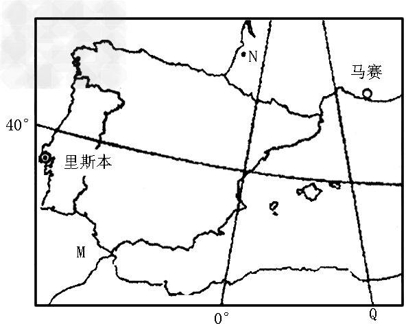 2、单选题 下图为世界局部地区图,图中PQ线为昏线,当PQ线与极圈相切时,一艘轮船从里斯本出发将一批货物运往马赛港。据此回答1-3题。