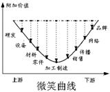 材料二:“微笑曲线”(Smiling Curve)是台湾宏基公司董事长施振荣先生最早提出的,它起初被用于说明电脑行业不同环节与所实现的附加价值之间的关系,后来被广泛应用于其他领域。 如下图: