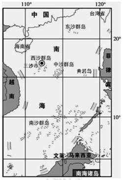 (1)根据材料一,回答下题:2012年6月21日,国务院批准设立管辖西沙群岛、中沙群岛、南沙群岛的岛礁及其海域的地级市为___________市,是中国地理纬度位置最南端的市。(2分)