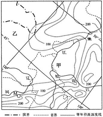 5、综合题 下图为我国某地区年径流深度(毫米)等值线图(年径流深度为年降水量与年蒸发量的差值)。读图回答问题。
