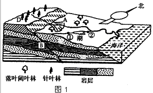 (2)图1中B处地质构造属于______________。