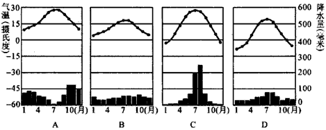 (4)综合图中信息,如果该流域处于我国长江流域那么所属的气候类型最可能是