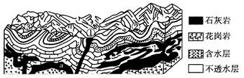 2、单选题 读某地区地质构造与地貌景观示意图,回答下列各题。