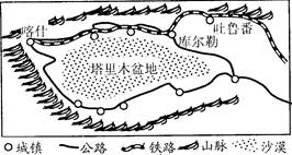 4、单选题  读塔里木盆地示意图。回答问题。