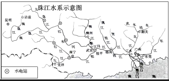 材料一?珠江水系示意图