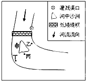 【小题1】甲处正对水流,流速快,A错。乙是凸岸泥沙堆积,水流平缓,水较浅,适宜垂钓,B错。丙位于小岛的背面,水流影响最小,最适宜垂钓,C对。丁是凹岸,水流急,不适宜垂钓,D错。