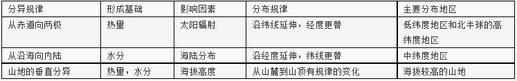 自然地理环境从赤道到两极、从沿海向内陆及垂直地带的地域分异规律。
