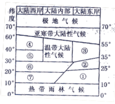 5、单选题  该图为以北半球为例。世界气候类型分布模式示意图,读图完成40题。
