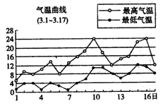 1、单选题 “春天孩子面,一日三朝变”。阅读今年3月1日至17日上海地区气温曲线图,分析回答下面几题。