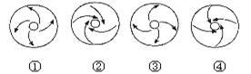 2、单选题 下列四幅气旋、反气旋图中,属于北半球的是: