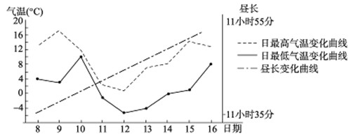 3、单选题 读济南市某时段气温和昼长变化示意图,完成题。