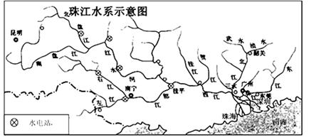 (4)高山冰雪融水补给(2分)?洪涝灾害频发成因:①地势低平,排水不畅;②珠江支流众多,流域面积广,上游来水量大;③降水量大且集中,且易受台风影响,多暴雨(每点2分,任答两点得4分,共4分)
