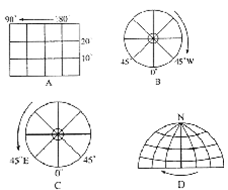 本题考查地球自转的方向,地球自西向东转,在北极上空看为逆时针,南极上空看为顺时针。东经度顺着地球自转方向增大。所以本题选择B选项。