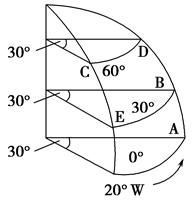 5、单选题  该图为40°N纬线的一部分,读图回答问题