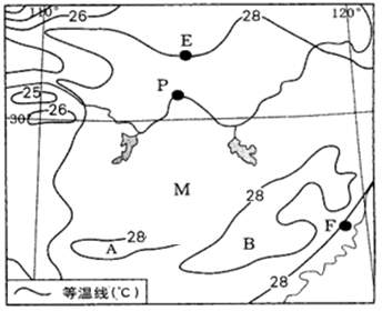 ⑶ 分别简述等温线在E、F两地的走向特点及原因。(4分)