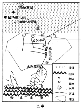 材料一:玛纳斯河流域示意图( 图甲)。
