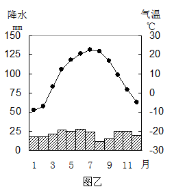 材料二:石河子市气候图( 图乙 )。