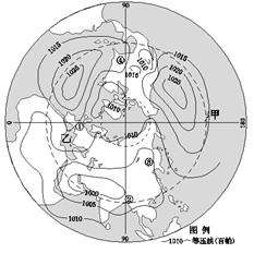 4、单选题 该图为某月海平面平均气压分布图。读图,回答问题。