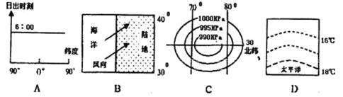 小题2:下列四幅图能正确反映此时世界各地地理现象的是( ?)