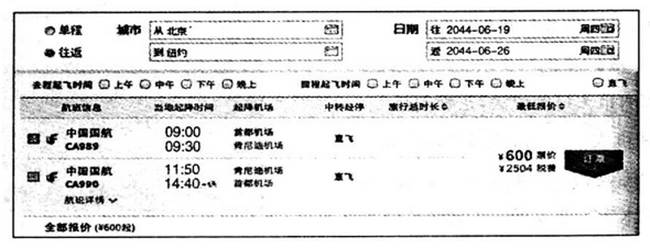 【小题1】根据机票显示的信息,北京至纽约(40°43′0″N,74°0′0″W)所需的飞行时间是