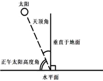 【小题1】由图中可以看出,太阳天顶角指太阳光线和地面垂线的夹角,天顶角为零,则太阳直射地面。冬至日,太阳直射南回归线。