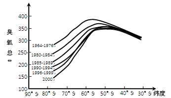 3、单选题 臭氧层保护是当今全球最重要的环保议题之一。下图反映了9月份30°S~80°S平流层臭氧总量多年变化状况。读图,回答29~30题。