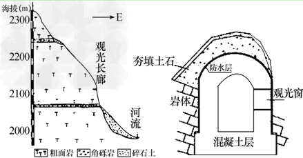 (2)针对易发地质灾害,图示观光长廊采取了哪些措施及其意义?