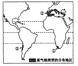 2、单选题 读“世界上某种气候类型的局部分布地区示意图”,完成下列各题。